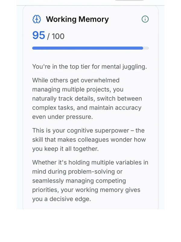 I took an IQ test out of curiosity, and this came up in the report - proof that as a VA, having a ‘cognitive superpower’ really matters!!